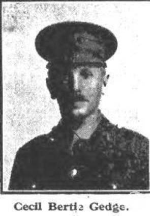 It was here that Cecil Bertie Gedge lost his life.