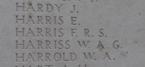 He is also commemorated on the war memorial now in St Paul’s church in Elsted, on which his name is shown as Fred Ceit Harris, and on the Midhurst Grammar School War Memorial, now in Midhurst Rother College.