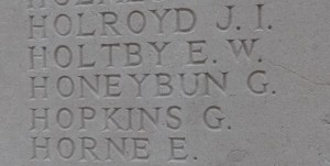 George Honeybun was killed on 13 October but his body was never recovered. He is one of 35,000 men commemorated on the Tyne Cot Memorial to the Missing, four miles south from where he was killed.