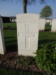 William was killed in action near Ypres (Ieper) in Belgium on 15 October 1917, when a member of the Z (medium) Trench Mortar Battery with the 21st Brigade, part of the 30th Division. He was buried at Huts Cemetery at Dickebusch, south-west of Ypres. His grave bears the epitaph: “Waiting for the coming of Our Lord Jesus Christ“.